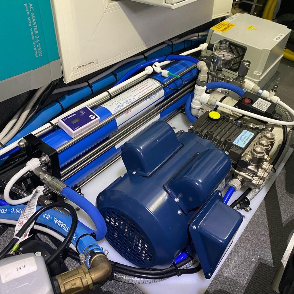 H2O Marine will help assess needs, specifications and location for installation of watermaker to ensure convenient operation and servicing in future. This area will have easy access to a saltwater intake, a drain and be free of fuel vapors or excessive heat.